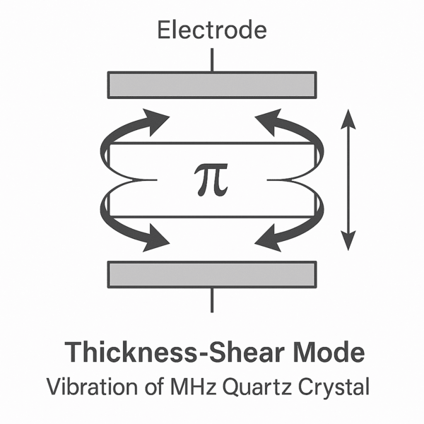 El cristal de cuarzo se esmerila y se corta (normalmente corte AT) de tal manera que oscila en un determinado modo de empuje cuando se aplica una tensión alterna en la gama de MHz. El cuarzo no se mueve en sentido longitudinal o transversal a la superficie, sino que la oscilación tiene lugar en el plano del cristal, es decir, como un "cizallamiento" lateral.