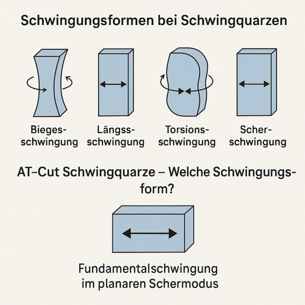 Los cristales vibratorios pueden funcionar en varios modos de vibración mecánica. Éstos difieren en cuanto a su geometría, características de frecuencia, comportamiento a temperatura e idoneidad para determinadas aplicaciones.